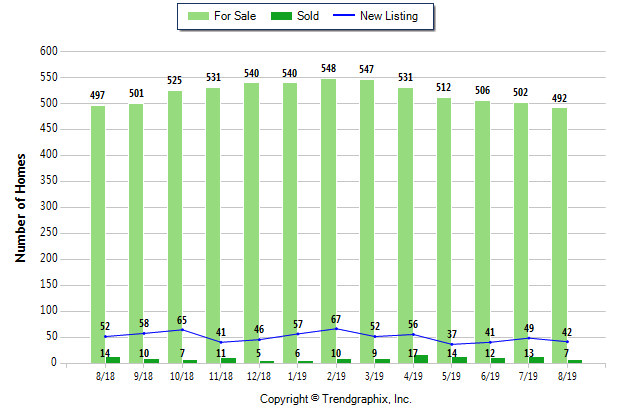 Homes Closed in August 2019: 7 units. Down 46.2% compared to last month