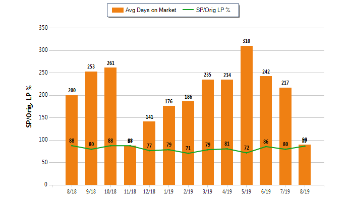 Sold/Original List Price % in August 2019: 87% . Up 8.8% compared to last month