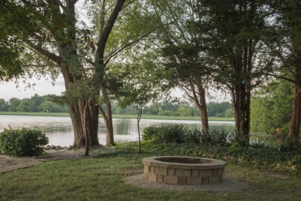 Embrace the evening moonlight and light up a fire pit with friends and family to roast marshmallows. It's also the perfect spot to warm up after a day of canoeing or waterskiing. Look for all shapes and sizes from small, round portable pits to grand monoliths that anchor your overall design. Keep in mind the fire pit you choose may require placing it on flat stone to prevent embers from getting out of control. In addition, disclosing a fire pit may be a requirement for your homeowners insurance policy or could be against your lakefront neighborhood rules.