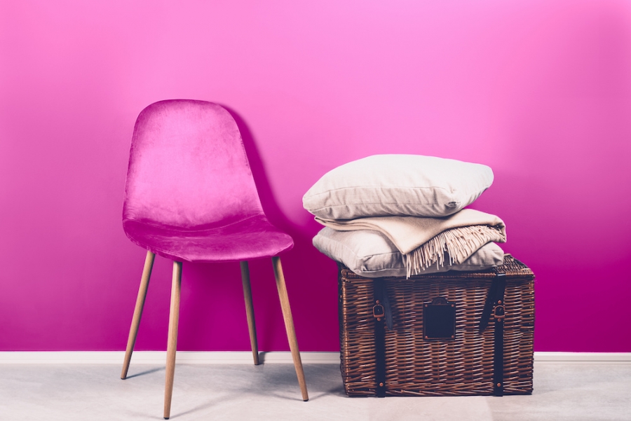 If you’re unsure about this theatrical color but interested in exploring it, start small. For example, you can opt for window coverings in the shade of pinky-red. You can also use it as an accent color and something to make a statement. Maybe you go with a neutral space, with bits of color like magenta pillows or throw blankets.